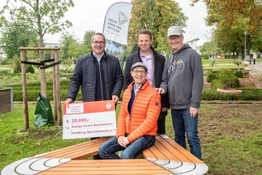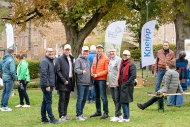 Zur Eröffnung wurde die neue Wetterauer Kneipp Bäder 3Eck Bank eingeweiht. Landrat Jan Weckler übergab sie an Bürgermeister Sascha Huber und Dr. Lutz Ehnert, Vorsitzender des Kneippvereins und Vizepräsident des Kneippbundes.
